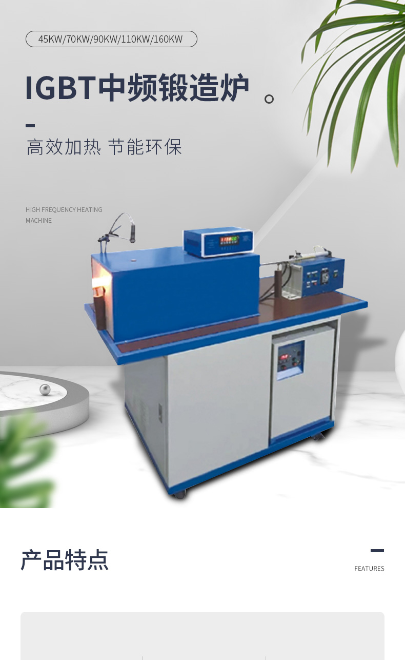 銅棒鍛造透熱設備、節能中頻鍛造爐、中頻感應加熱爐的主要特點: